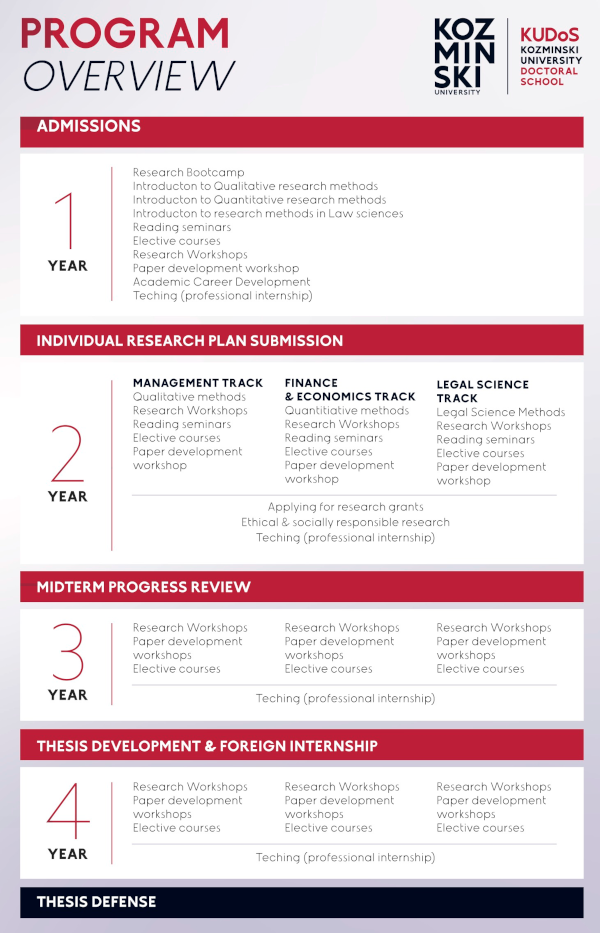 Szkoła Doktorska Akademii Leona Koźmińskiego (Kozminski University Doctoral School, KUDoS) to w pełni finansowany, międzynarodowy i interdyscyplinarny program doktorski w zakresie zarządzania, ekonomii i finansów oraz prawa. Utworzona w 2019 roku, bazuje na ponad dwóch dekadach doświadczeń w kształceniu doktorantów w Akademii Leona Koźmińskiego. Od uzyskania uprawnień do nadawania stopnia doktora w 1998 roku uczelnia wypromowała ponad 300 doktorów, łącząc rygor akademicki z silnymi powiązaniami z praktyką biznesową.