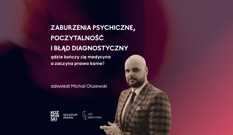 Studenckie Koło Naukowe Prawa Medycznego i Farmaceutycznego „Lex Medicinae” zaprasza na spotkanie poświęcone praktycznym aspektom odpowiedzialności karnej w kontekście zaburzeń psychicznych i błędów diagnostycznych. Podczas wykładu adw. Michał Olszewski przedstawi, w jaki sposób sądy analizują opinie psychologiczne i diagnozy psychiatryczne w sprawach karnych - zarówno w kontekście (nie)poczytalności, jak i sporów dotyczących standardów diagnostycznych.