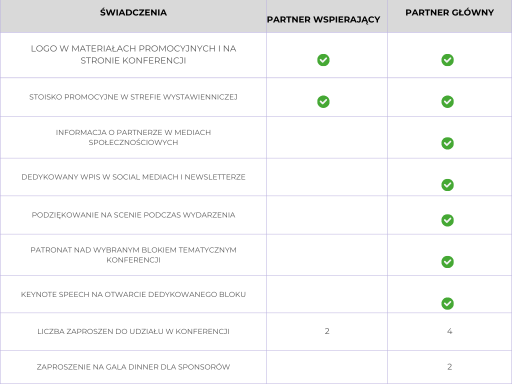 Koszt partnerstwa: - Partner Wspierający: 10 000 PLN netto - Partner Główny: 30 000 PLN netto
